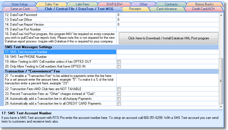 Enter it into the settings on lines 17 and 18 under the Club/Central File/DataTrue/Test MSG tab in Store Information Setup.